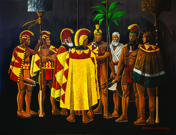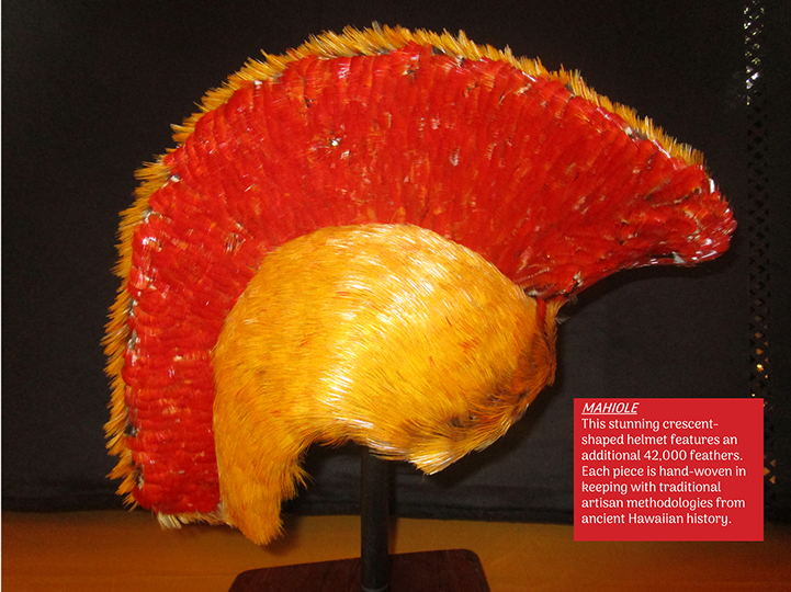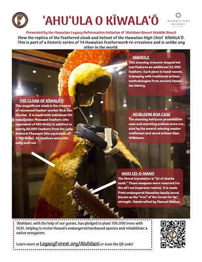 In 2016, Hawaiian Legacy Reforestation Initiative commissioned the 4th collection of featherwork art reproductions: a cape and helmet worn by High Chief Kīwala'ō.
